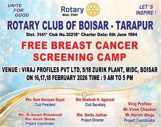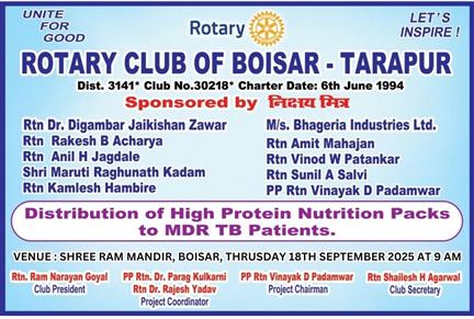 The Rotary Club of Boisar-Tarapur, under the dynamic leadership of . . .