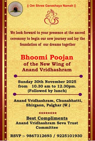Received an invitation from the Anand Vruddhashram Seva Trust Commi. . .