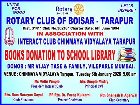 Rotary Club of Boisar-Tarapur, under the leadership of President Rt. . .